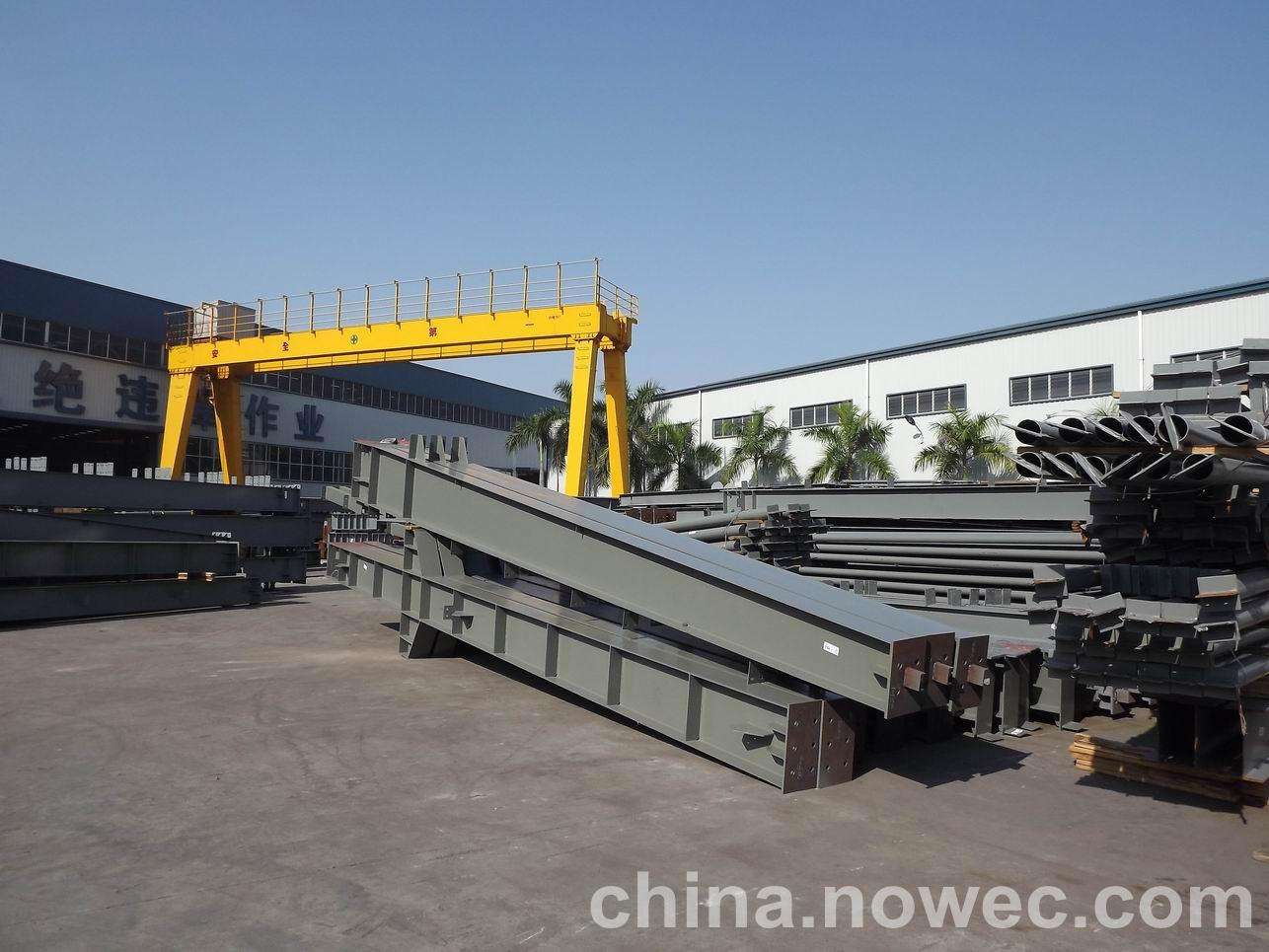 条状单元一般沿长跨方向分割,其宽度约为1~3个网格,其长度为l2或l2/2(l2为短跨跨距)。块状单元一般沿双鸭山网架平面纵横向分割成矩形或正方形单元。每个单元的重量以现有起重机能胜任为准。条(块)与条(块)之间可以直接拼装,也可空一网格在高空拼装。由于条(块)状单元是在地面拼装,因而高空作业量较高空散装法大为减少,拼装支架也减少很多,又能充分利用现有起重设备,故较经济。这种安装方法适用于分割后网架的钢度和受力状况改变较小的各类中小型网架,如两向正交正放四角锥、正放抽空四角锥等网架。