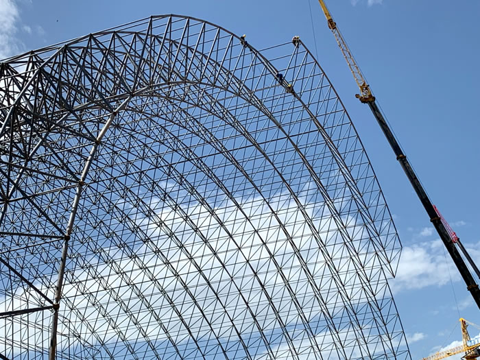 (2)网架加工前应对现场尺寸进行复测,确认无误后方可进行加工、安装;网架制作、运输、安装应遵守《空间网格结构技术规程》JGJ7-2010、《钢网架双鸭山螺栓球节点》JG/T 10-2009、《钢网架双鸭山螺栓球节点用高强度螺栓》 GB/T 16939-2016、《双鸭山钢结构双鸭山工程双鸭山施工规范》 GB50755-2012、《双鸭山钢结构双鸭山工程施工质量验收标准》 GB50205-2020。